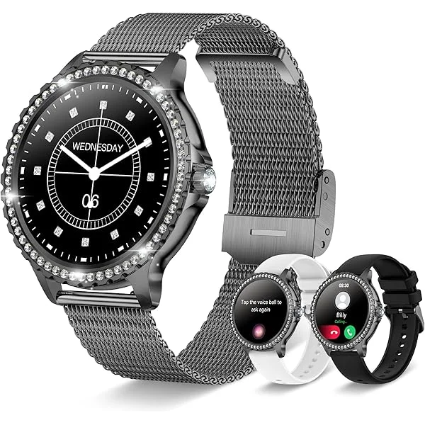 Call Receive Dial, Smart Watches for Android iOS Phones 1.32" HD Smartwatch with AI Voice Control Heart Rate Sleep Monitor Pedometer Waterproof Activity Tracker, Black Black-Diamond